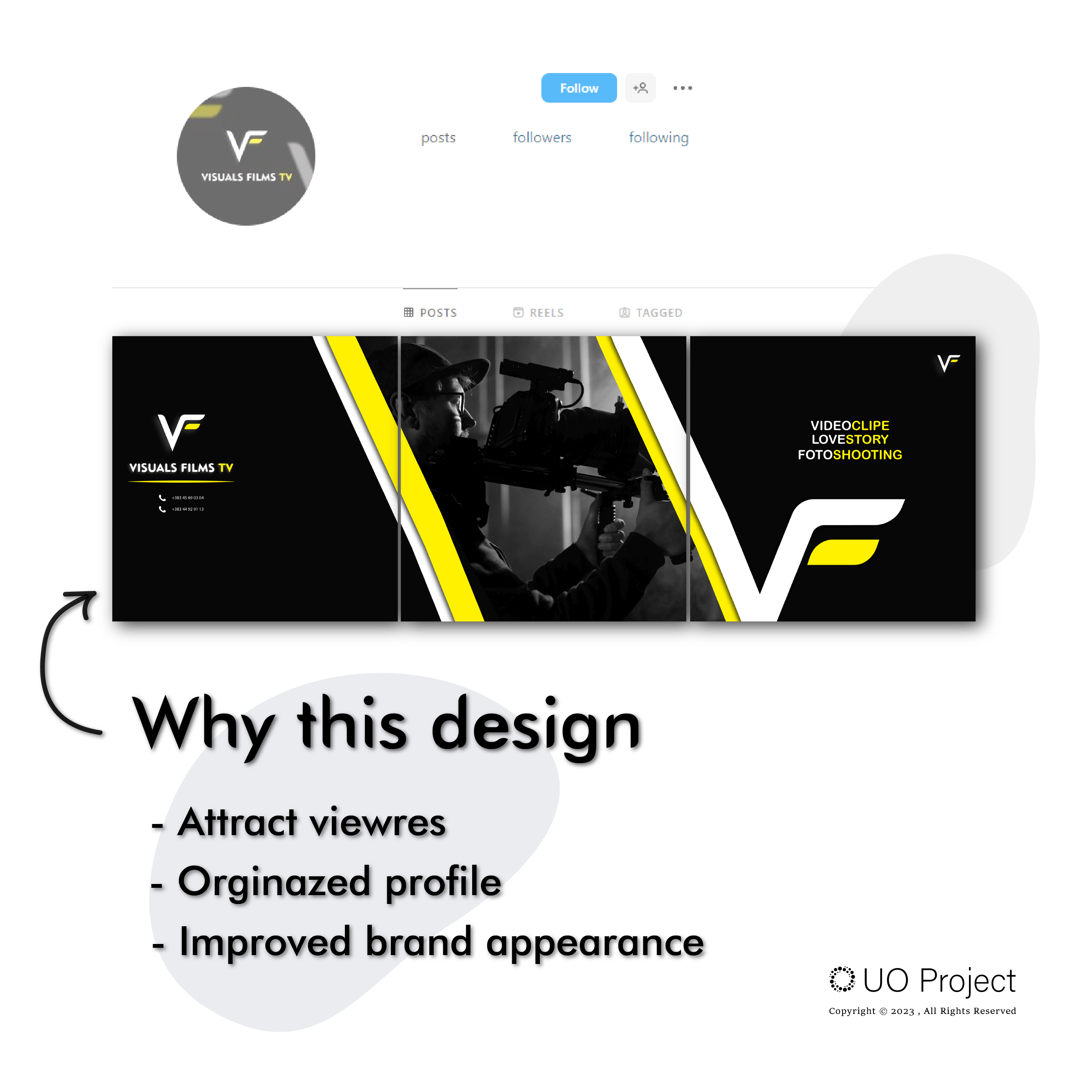 Recognizing the significance of a strong online presence, UO Design also designed a captivating profile picture that serves as a recognizable avatar for "Visuals Films TV" across social media platforms. By considering every aspect of the brand's visual representation, UO Design ensured that "Visuals Films TV" would leave a lasting impression on their audience, fostering trust and encouraging engagement.